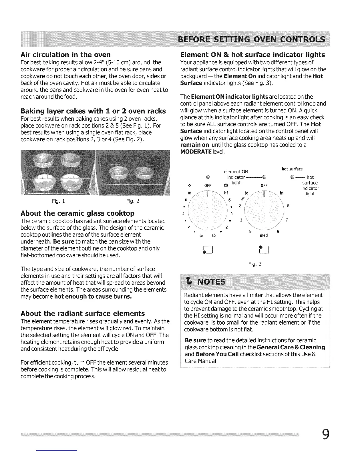 place cookware on rack positions 2 & 5 (See Fig. 1). For