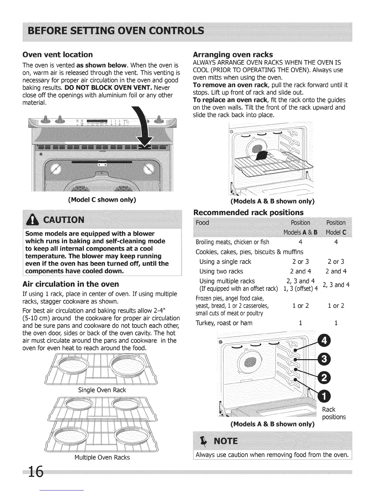 Multiple Oven Racks Always use caution when removing food from the oven.