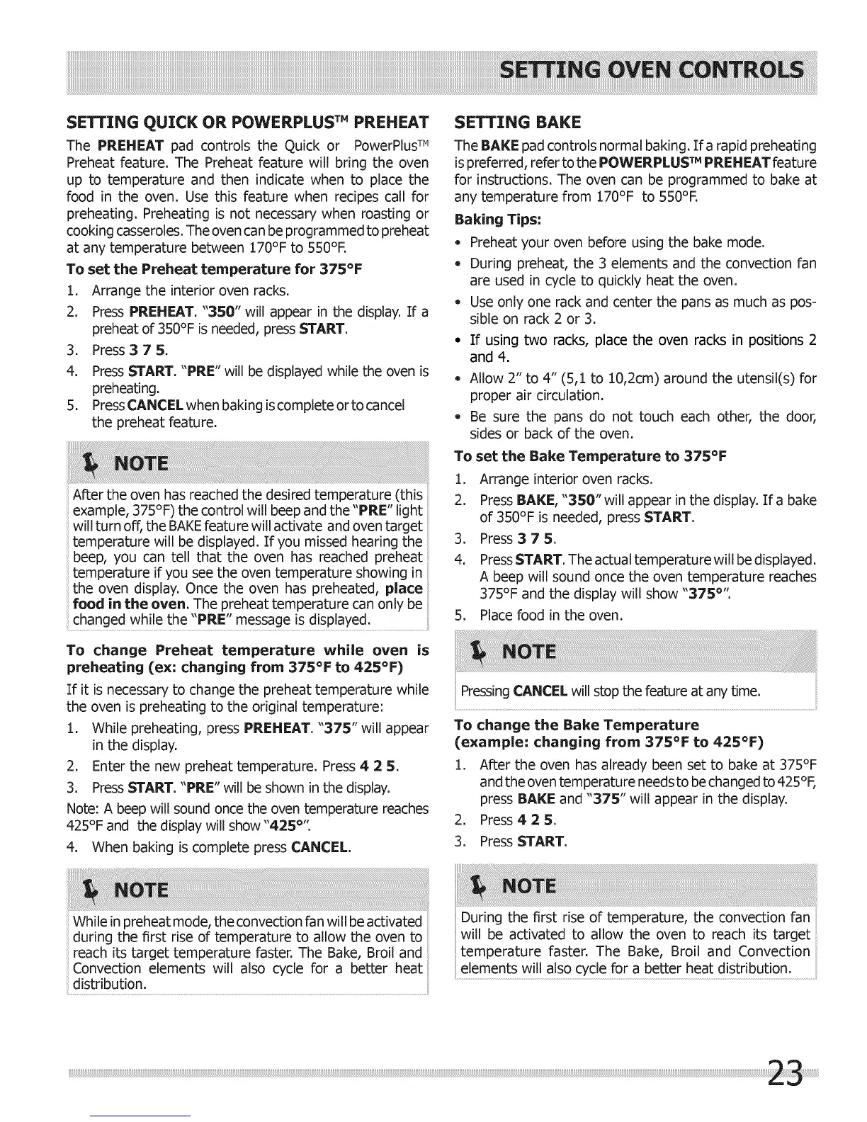 SETTING QUICK OR POWERPLUS TM PREHEAT