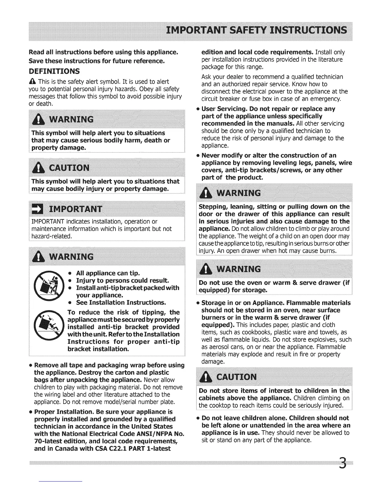 = Proper Installation. Be sure your appliance is