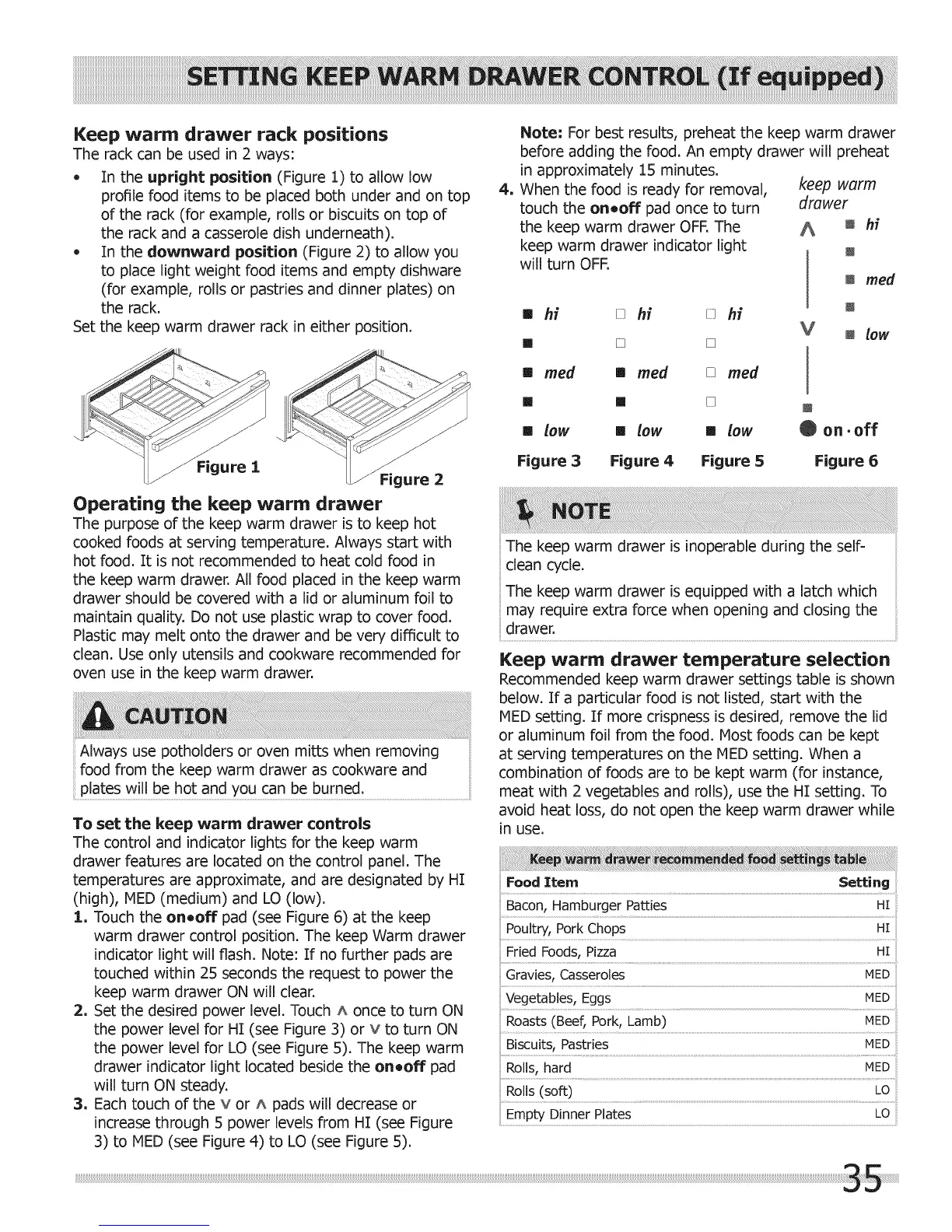 Note: For best results, preheat the keep warm drawer
