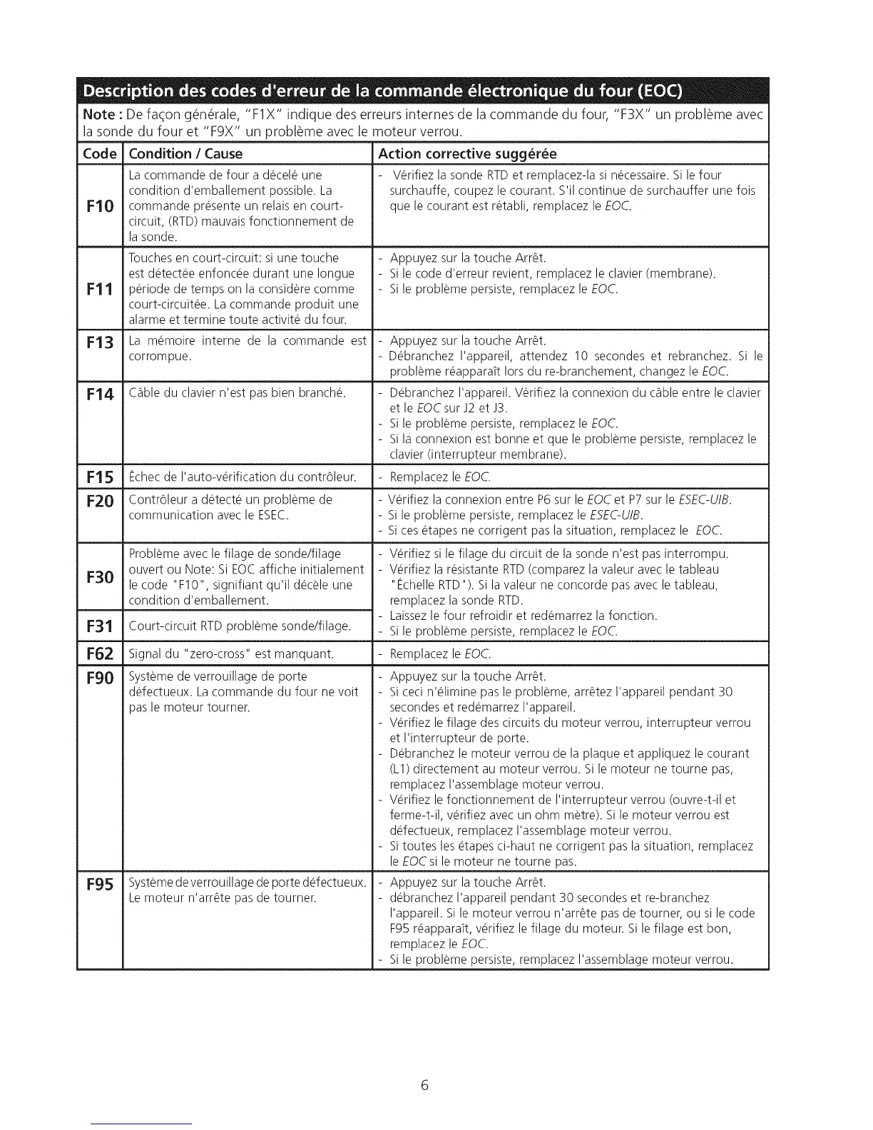 Note : De facon g_n_rale, "F1X" indique des erreurs internes de la commande du four, "F3X" un probl_me avec