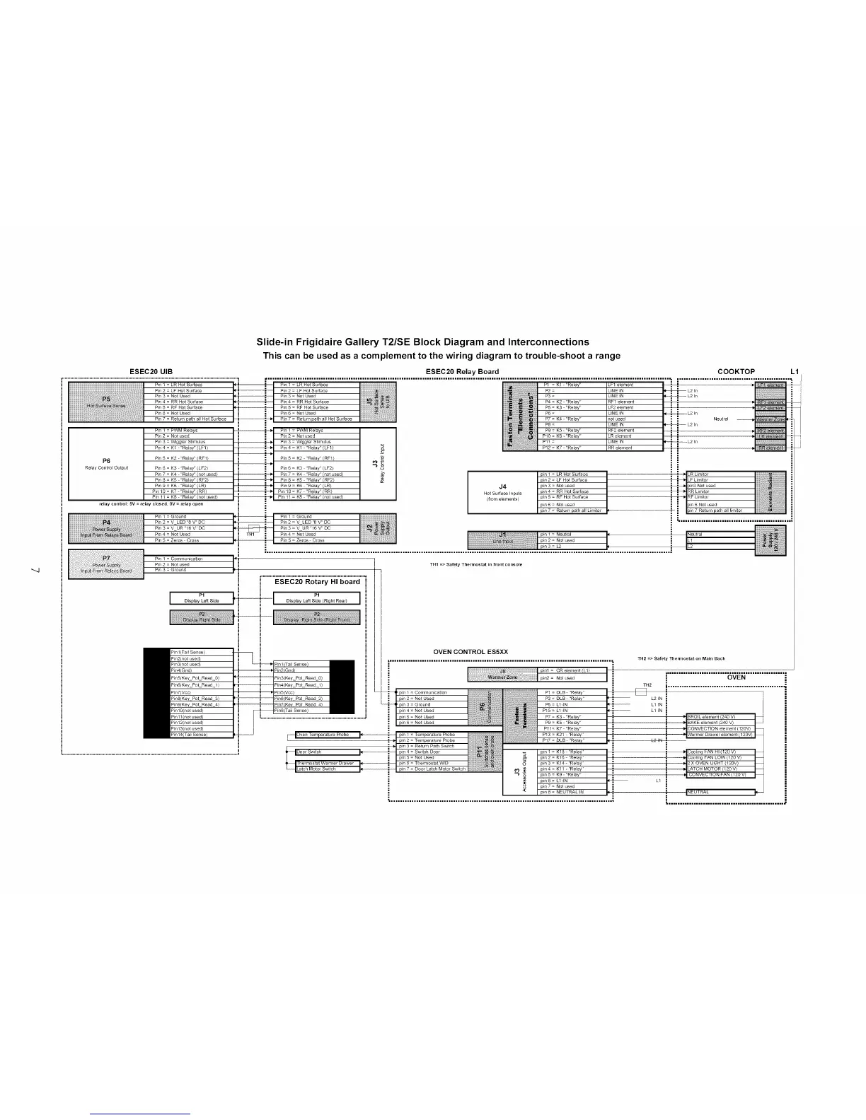 Slide-in Frigidaire Gallery T2/SE Block Diagram and Interconnections