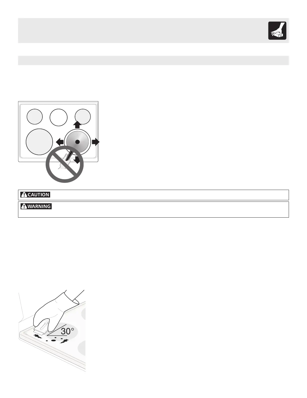 scrape the soil from the hot surface (as illustrated). Allow the cooktop to cool,