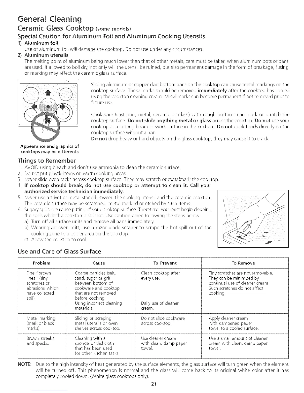 using the cooktop cleaning cream. Metal marks can become permanent if not removed prior to
