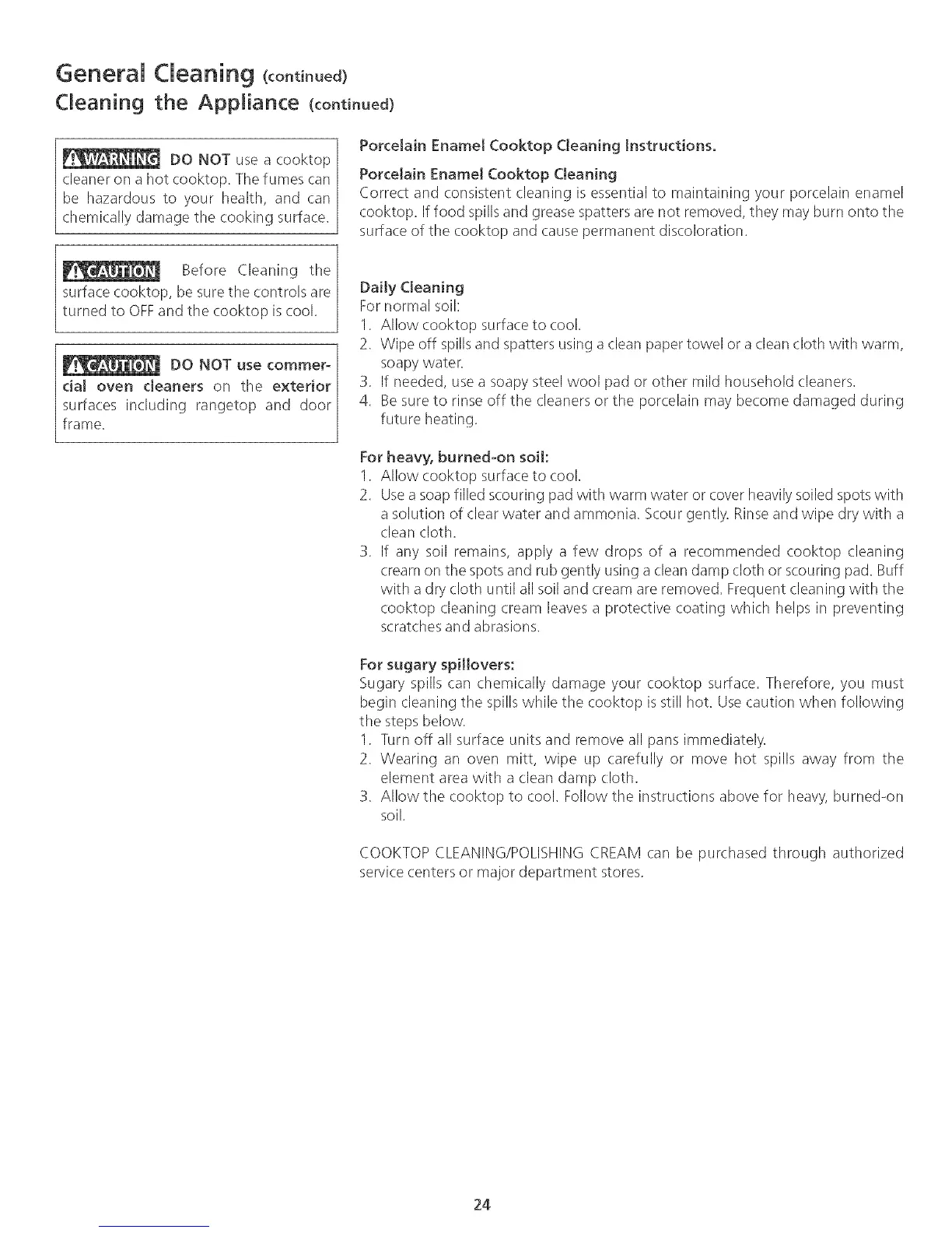 PorceJa[n Enamel Cooktop Cleaning instructions,
