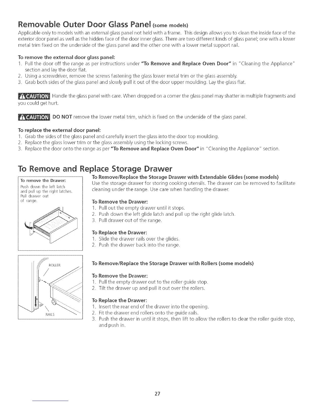 To Remove/Replace the Storage Drawer with Extendable Glides (some models}