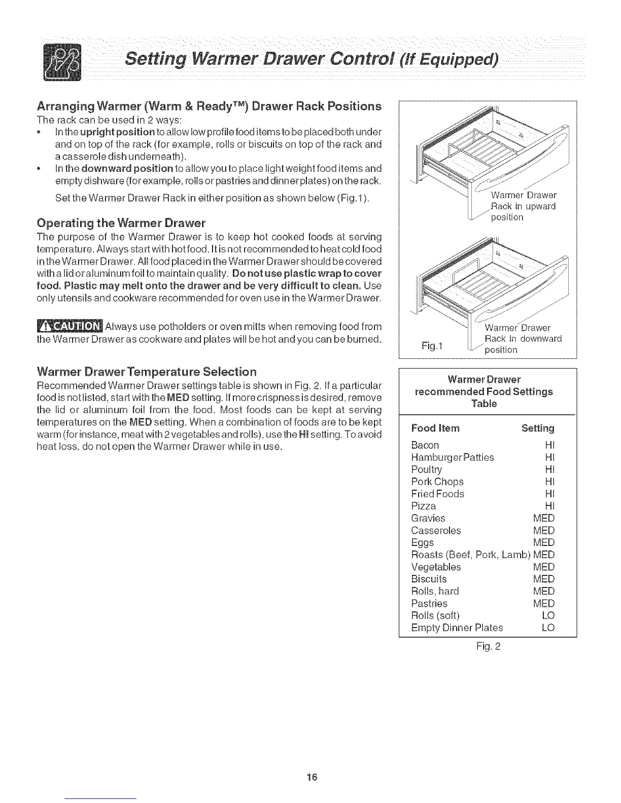 Recommended Warmer Drawer settings tame is shown in Fig, 2, Hfa particuHar