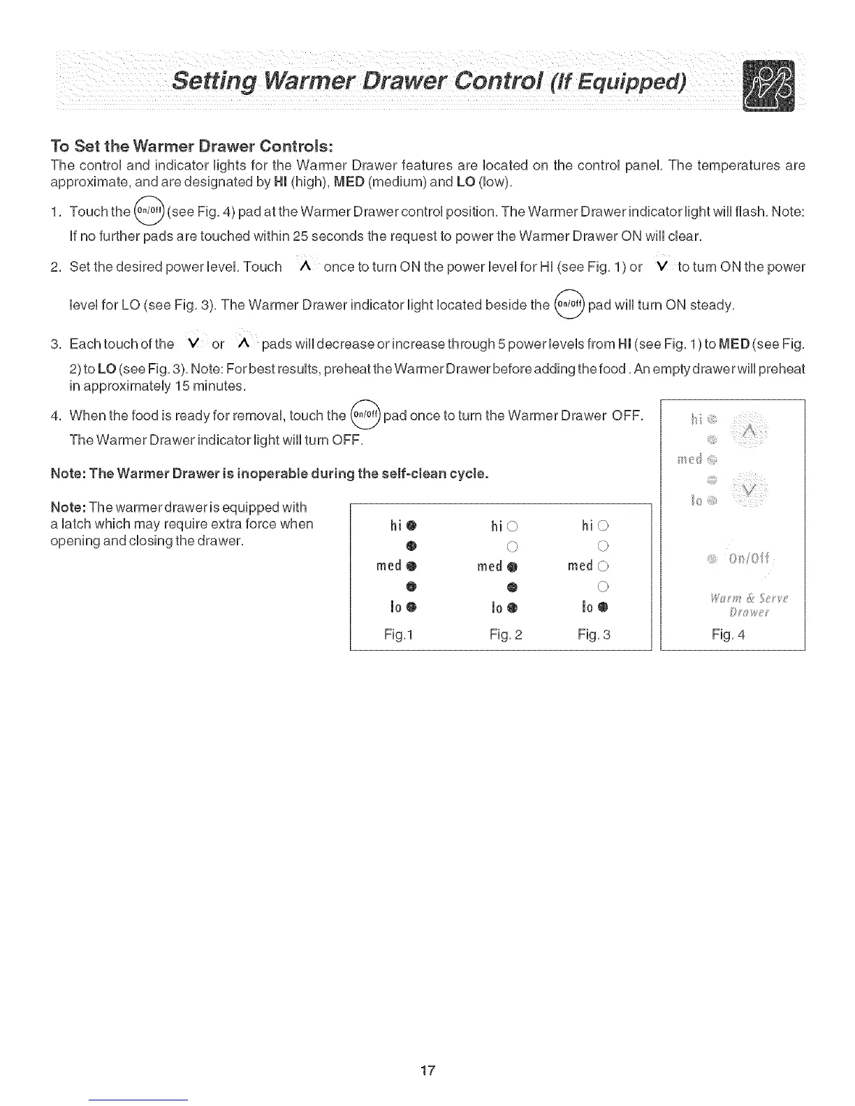 level for LO (see Fig, 3). The Warmer Drawer indicator light located beside the _ pad will turn ON steady.