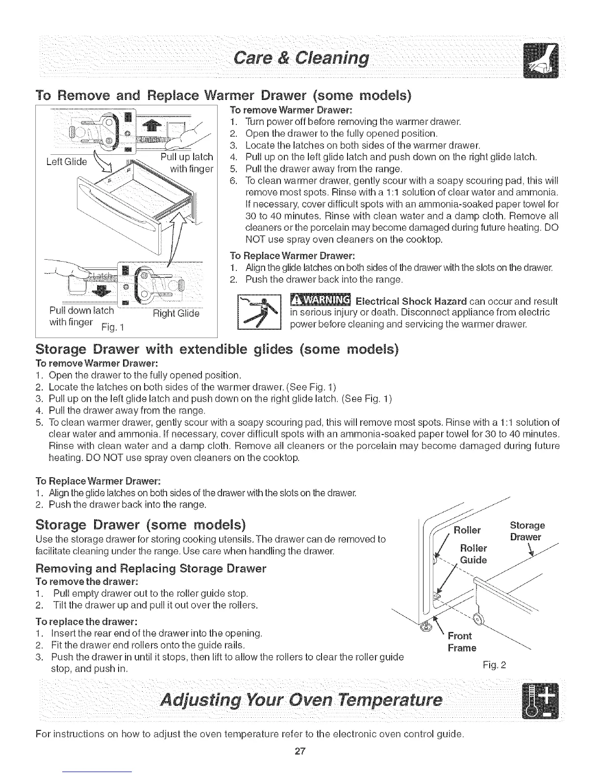 2, Locate the latches on both sides of the warmer drawer, (See Fig, 1)