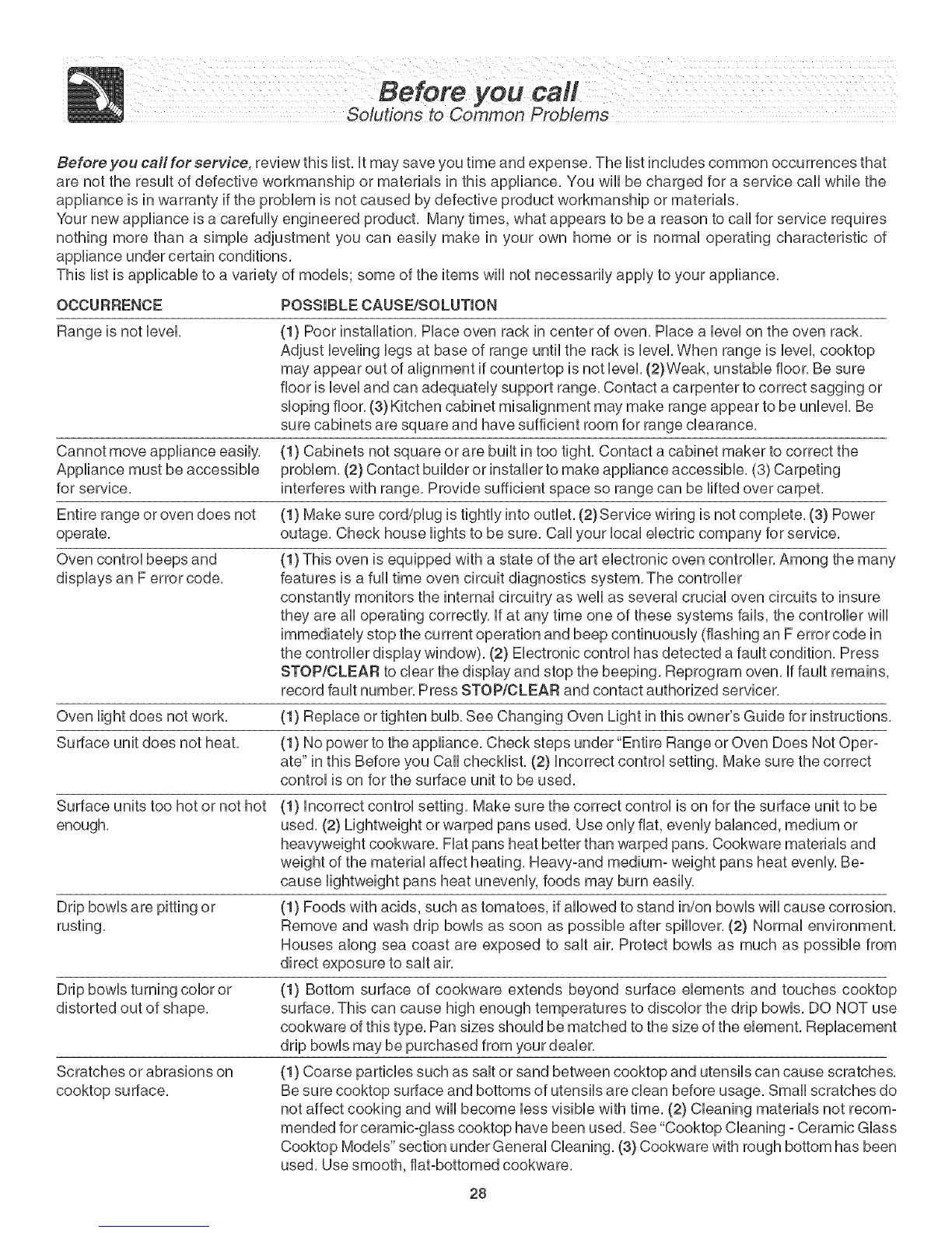 Before you call for service, review this list, it may save you time and expense, The list includes common occurrences that