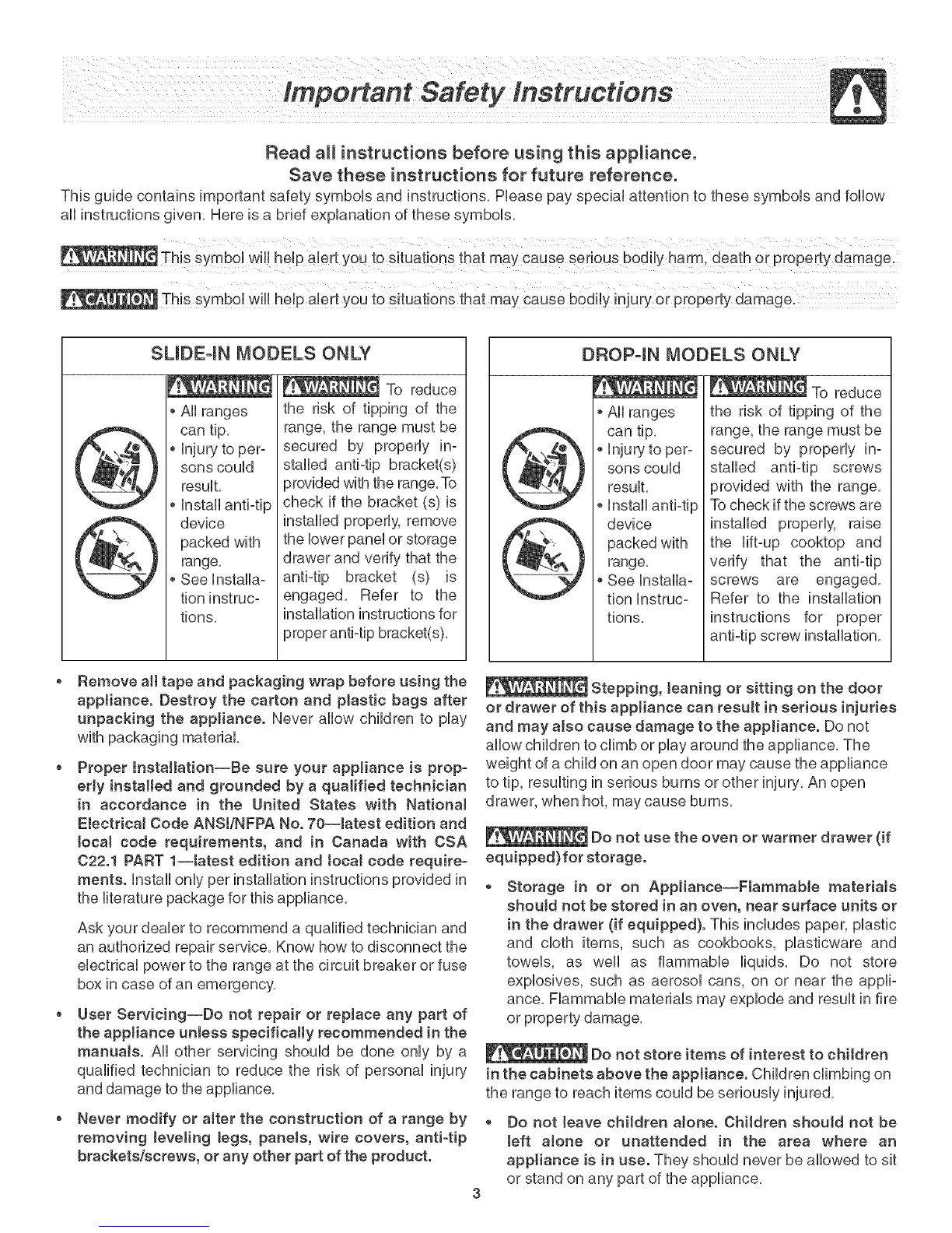 Proper Installation--Be sure your appliance is prop-