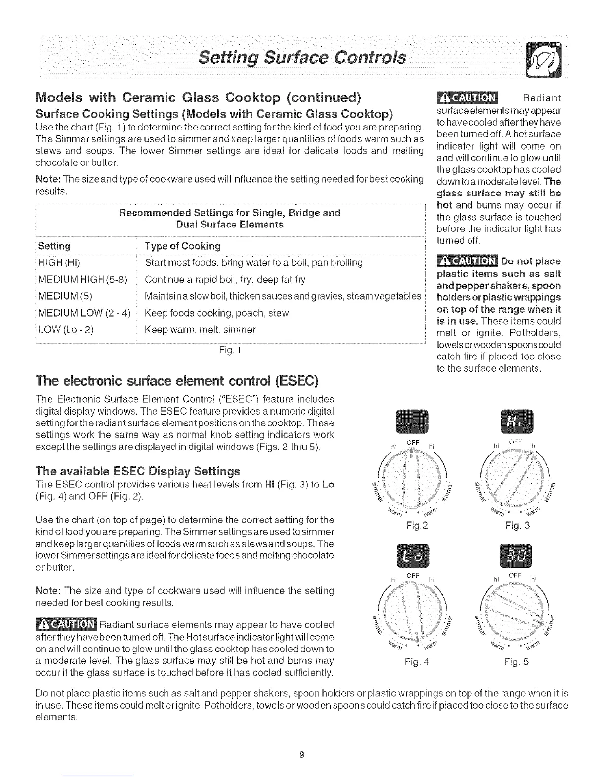 The ESEC control provides various heat levels from Hi (Fig, 3) to Lo