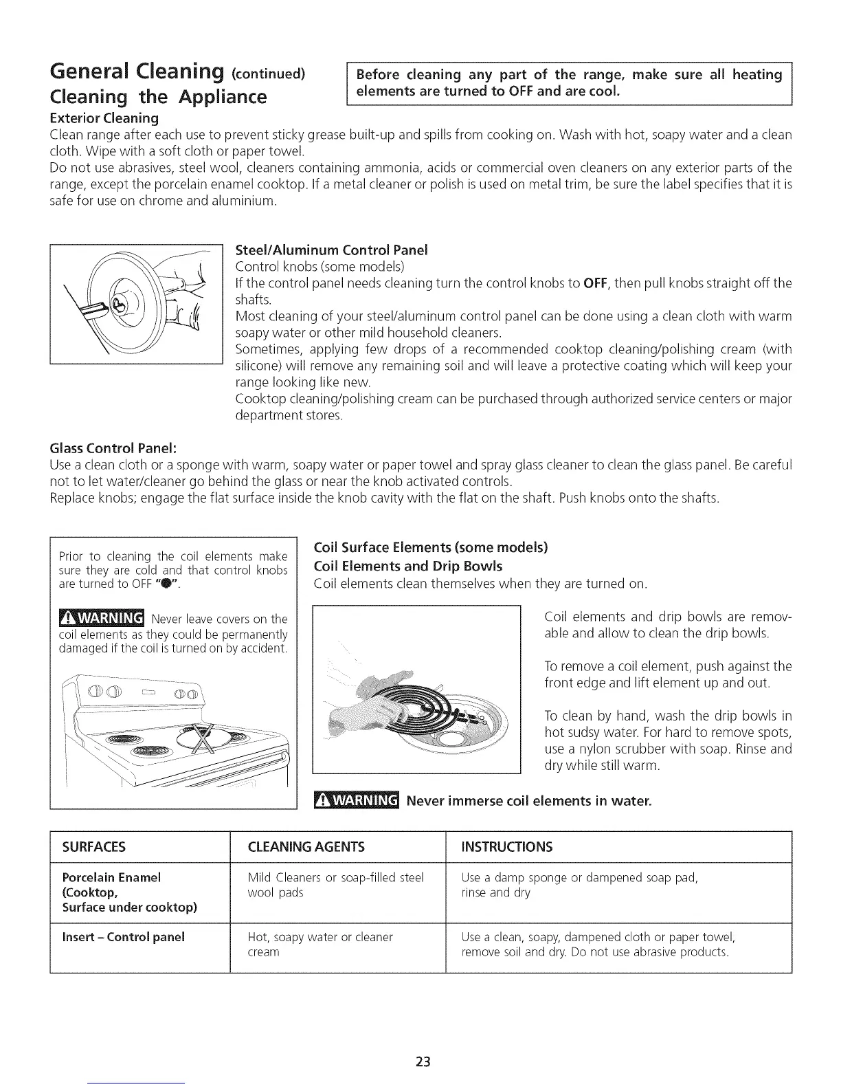 General Cleaning (continued) Before cleaning any part of the range, make sure all heating
