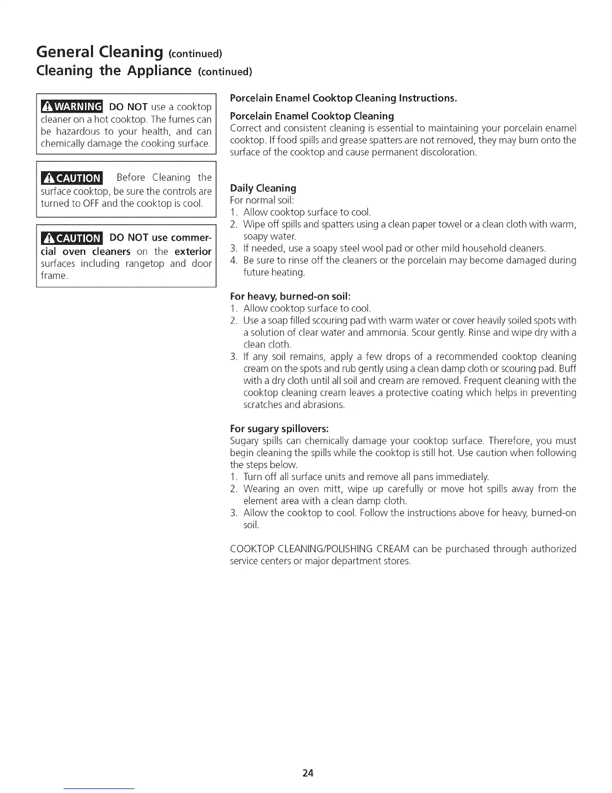 Porcelain Enamel Cooktop Cleaning Instructions.