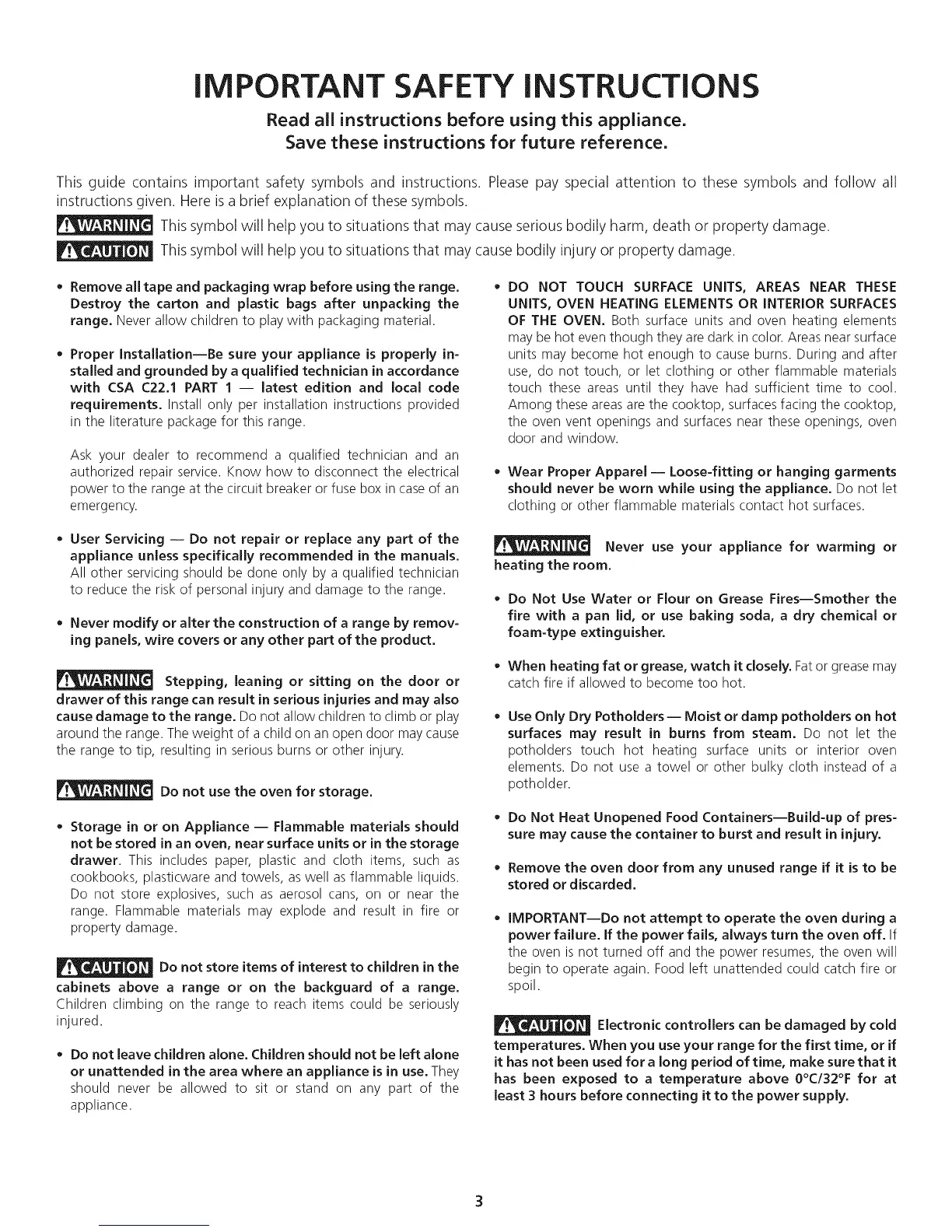 around the range. The weight of a child on an open door may cause