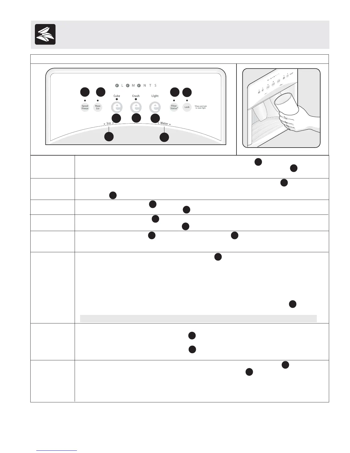 WATER To operate the water dispenser, press a glass against the WATER dispensing paddle . To