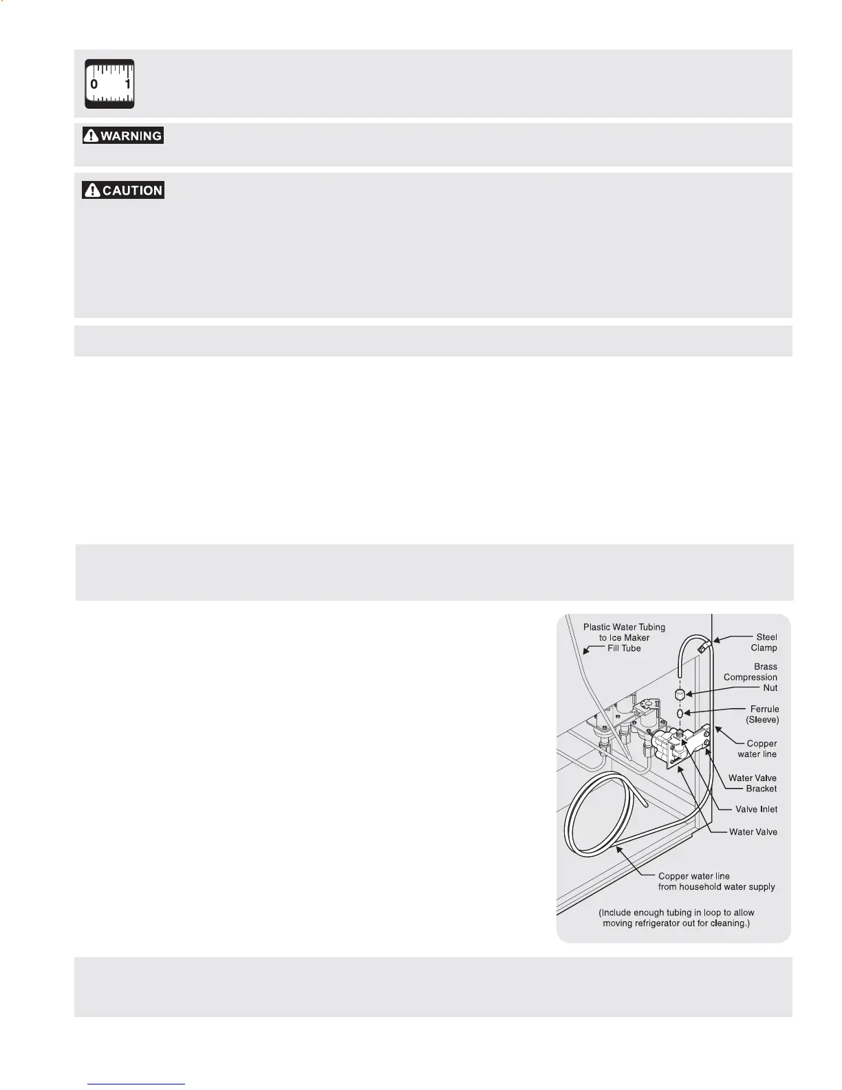 • A water supply line made of ¼ inch (6.4 mm) OD, copper tubing. To determine the length of copper tubing needed,
