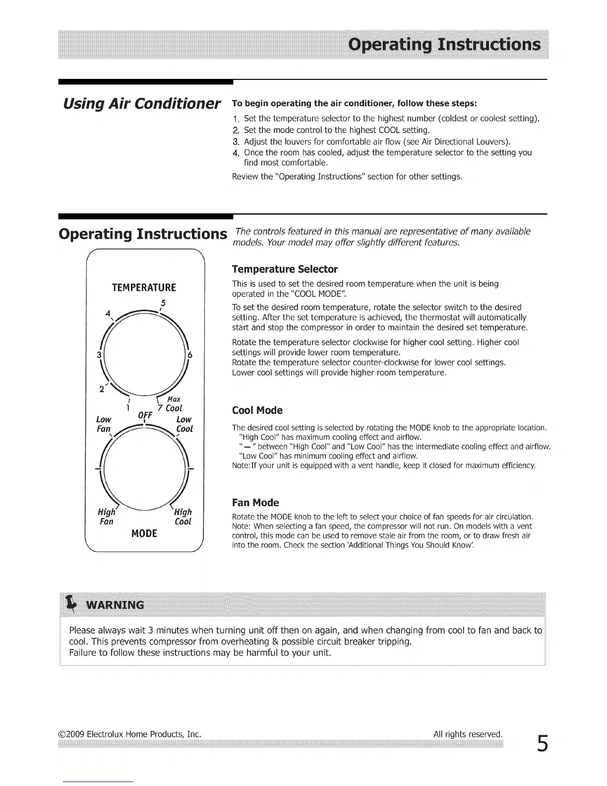 @2009 Electrolux Home Products, Inc. All rights reserved.