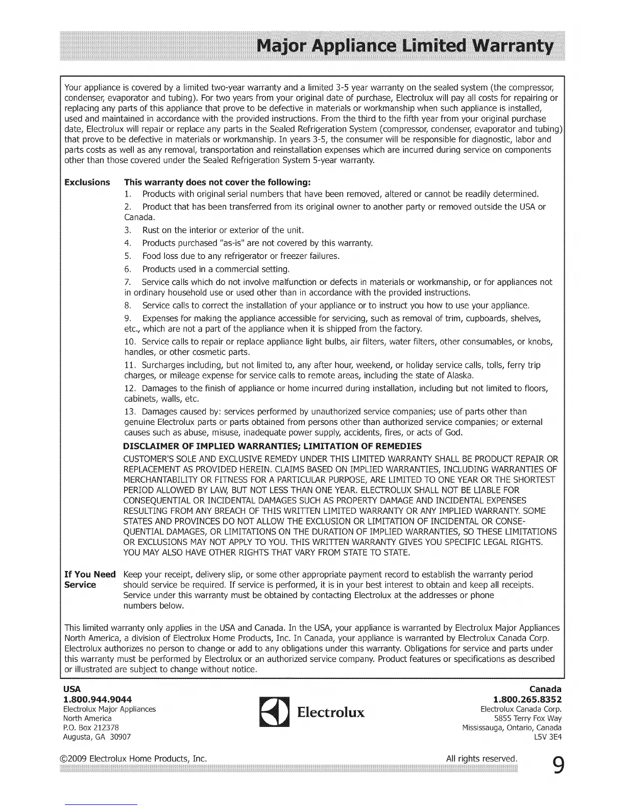 02009 Electrolux Home Products, Inc. All rights reserved.