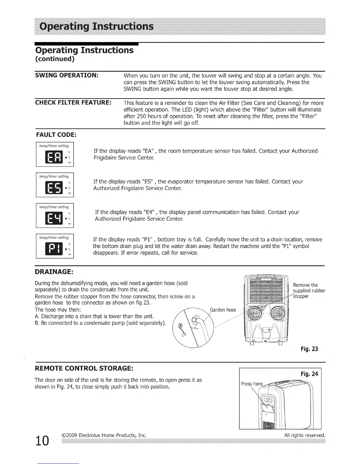 0 @2009 Electrolux Home Products, Inc. All rights reserved,