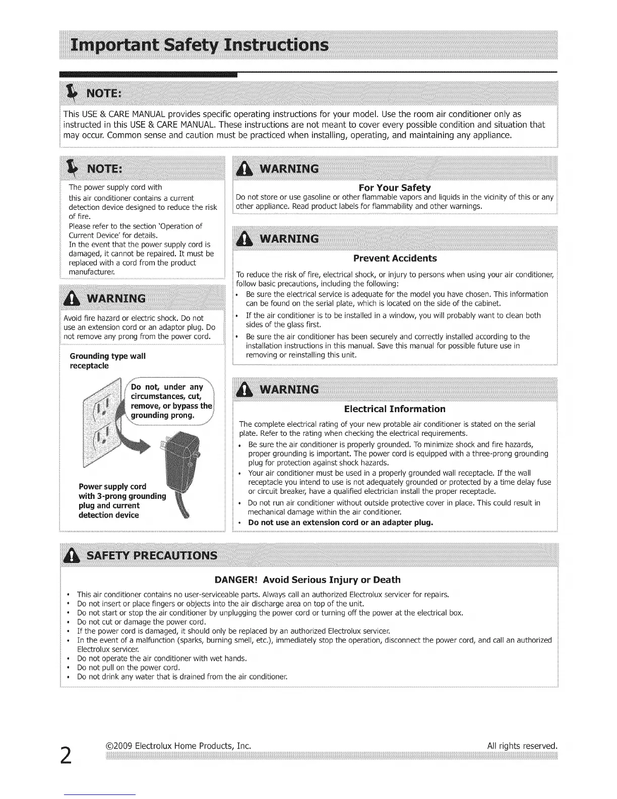 02009 Electrolux Home Products, Inc. All rights reserved.