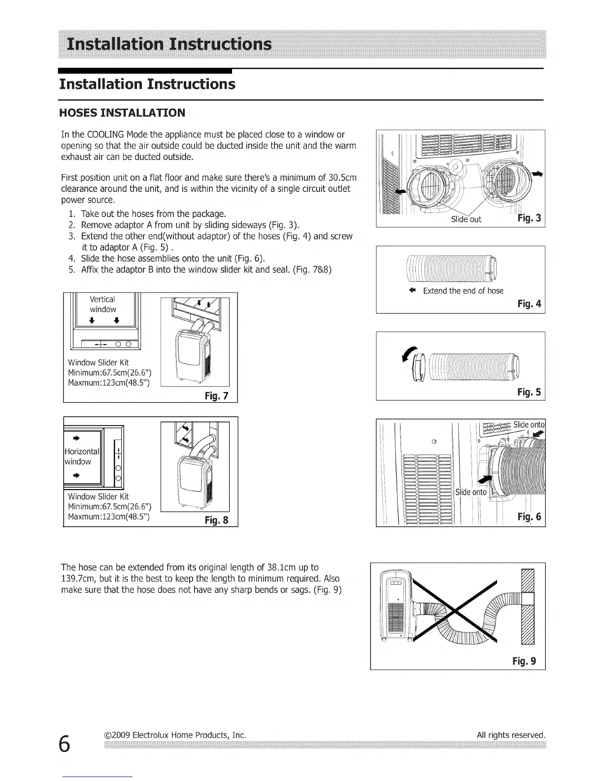 make sure that the hose does not have any sharp bends or sags. (Fig. 9)