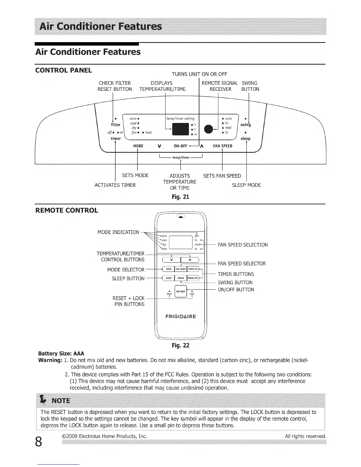 @2009 ElectroluxHome Products, Inc. All rights reserved.