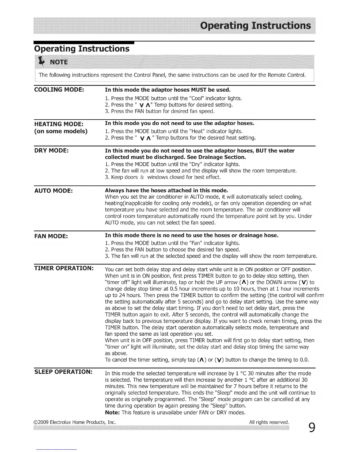 @2009 ElectroluxHome Products, Inc, All rights reserved. #._