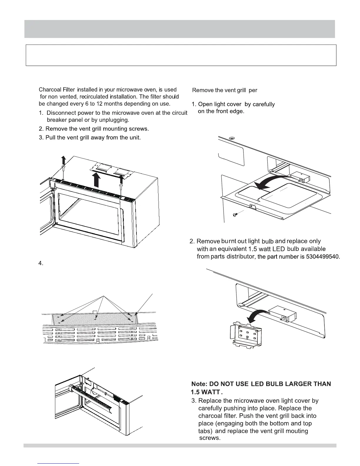CHARCOAL FILTER REPLACEMENT OVEN LIGHT REPLACEMENT