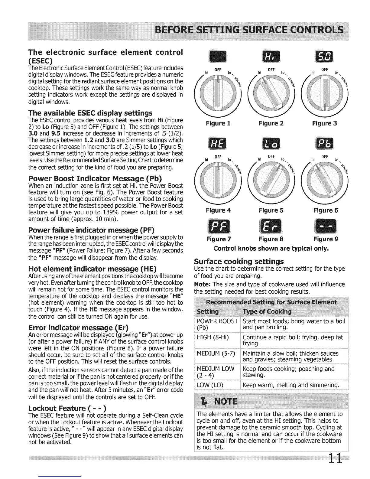 cooktop. These settings work the same way as normal knob