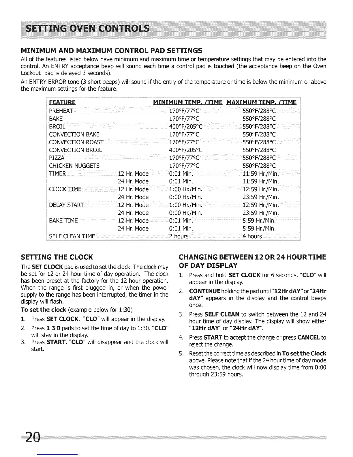 MINIMUM AND MAXIMUM CONTROL PAD SETTINGS