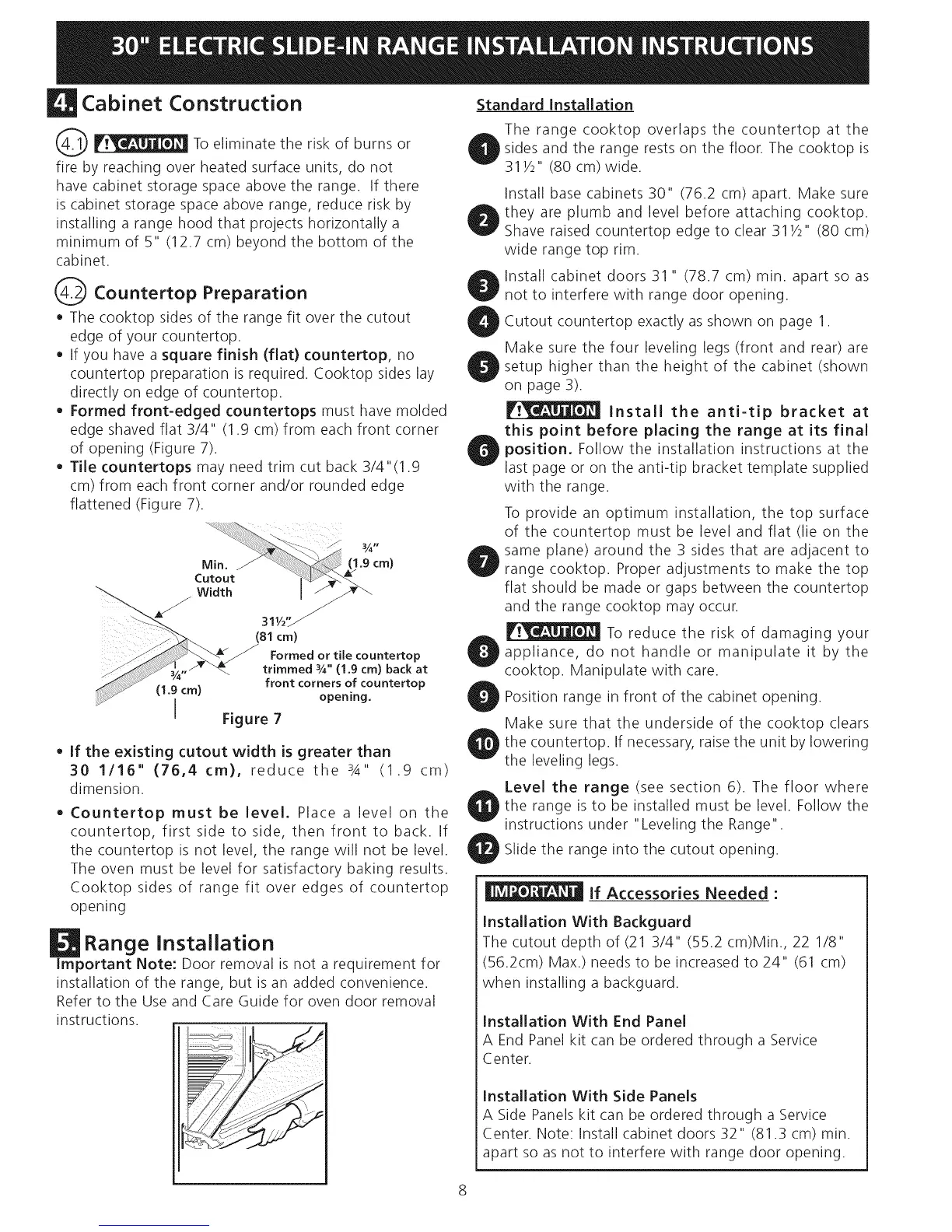 • The cooktop sides of the range fit over the cutout