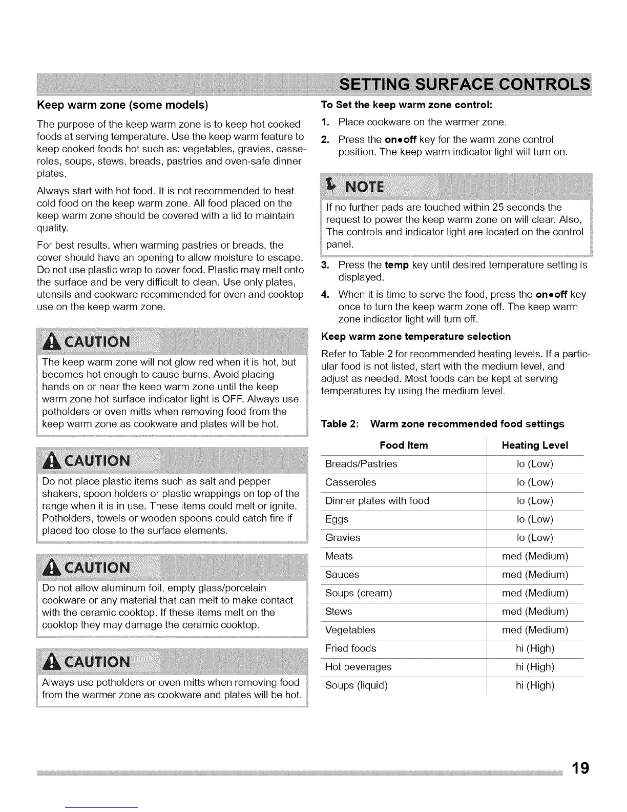 foods at serving temperature. Use the keep warm feature to