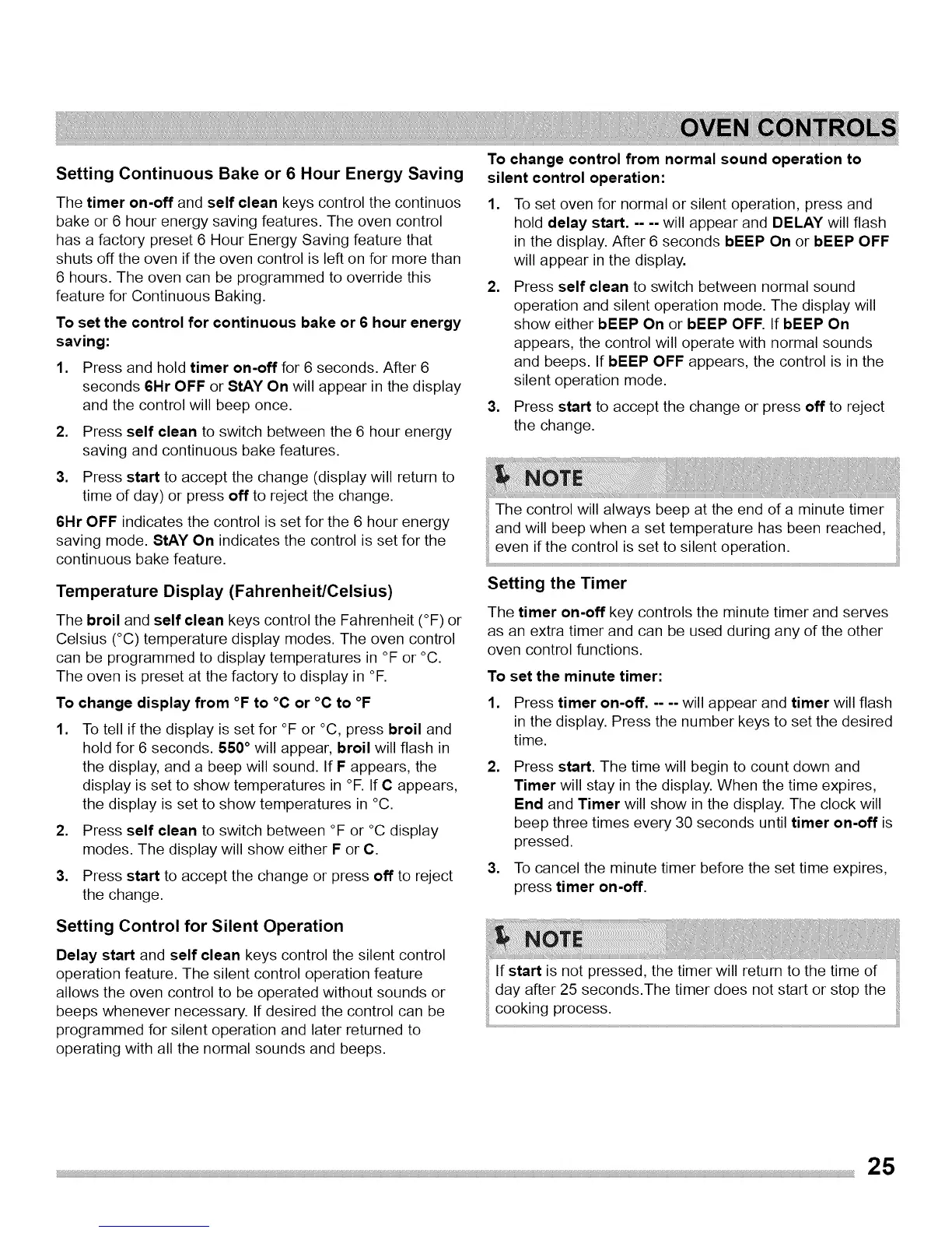 bake or 6 hour energy saving features. The oven control