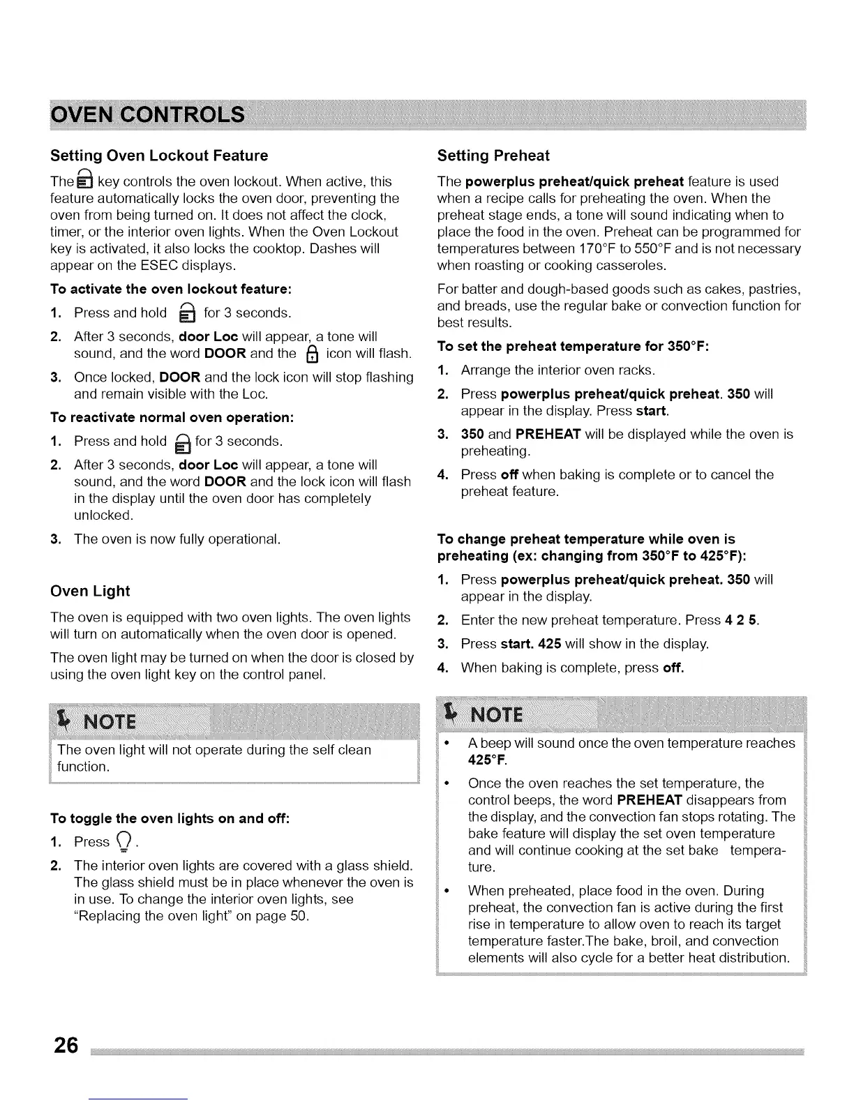 timer, or the interior oven lights. When the Oven Lockout