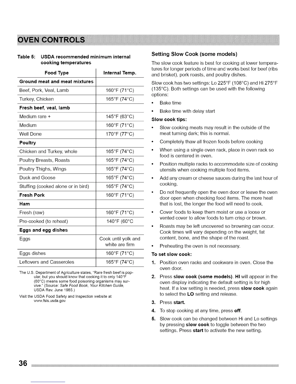 • Slow cooking meats may result in the outside of the