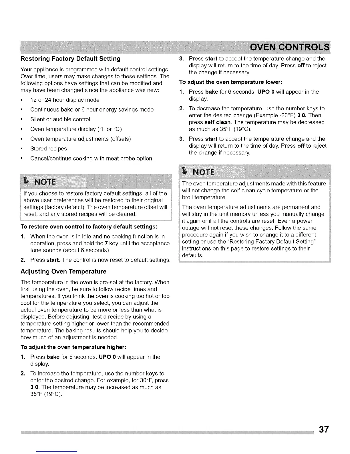 settings (factory default). The oven temperature offset will !: