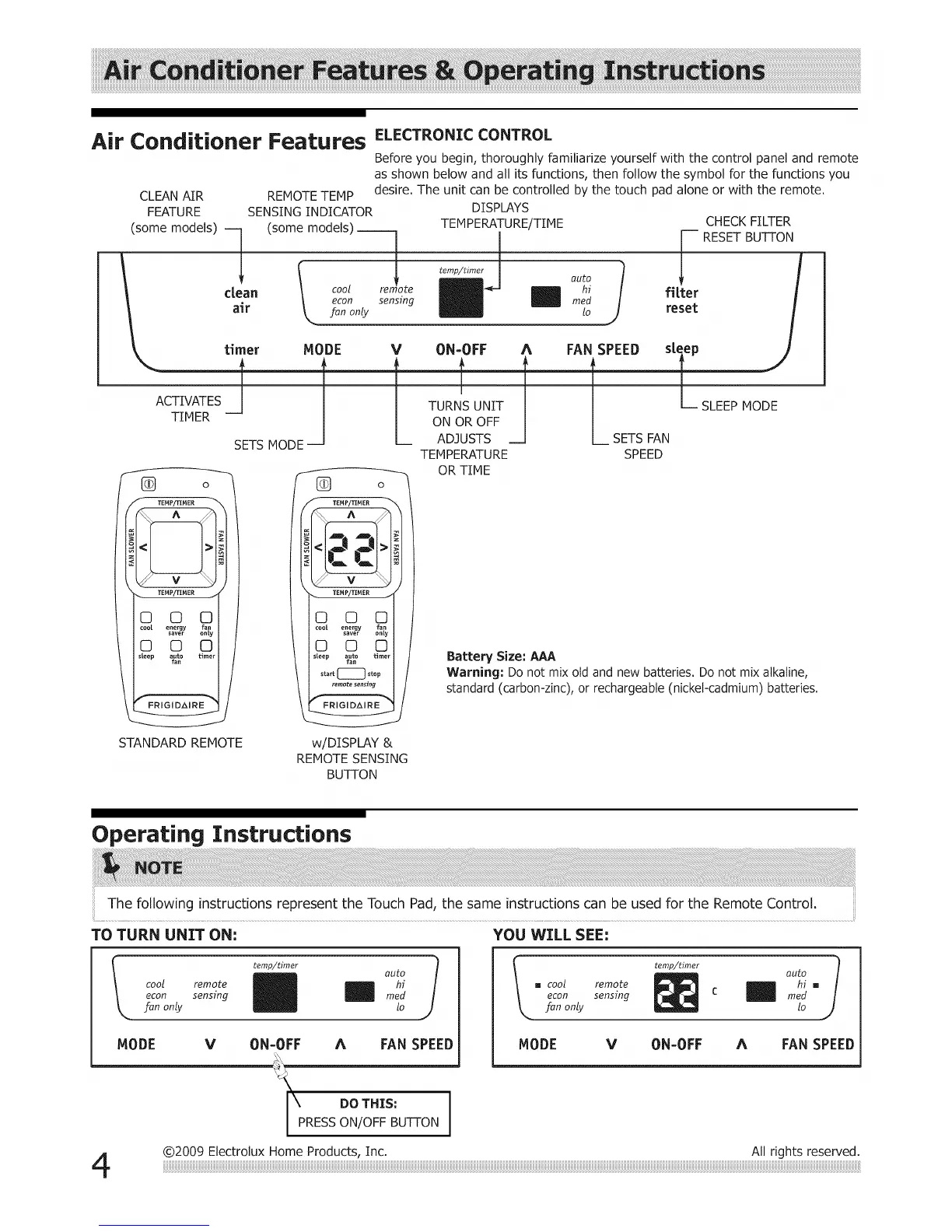 @2009 Electrolux Home Products, Inc.