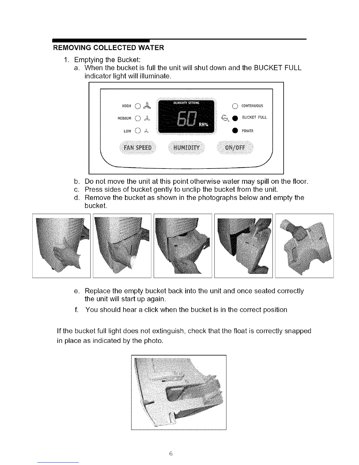 a. When the bucket is full the unit will shut down and the BUCKET FULL