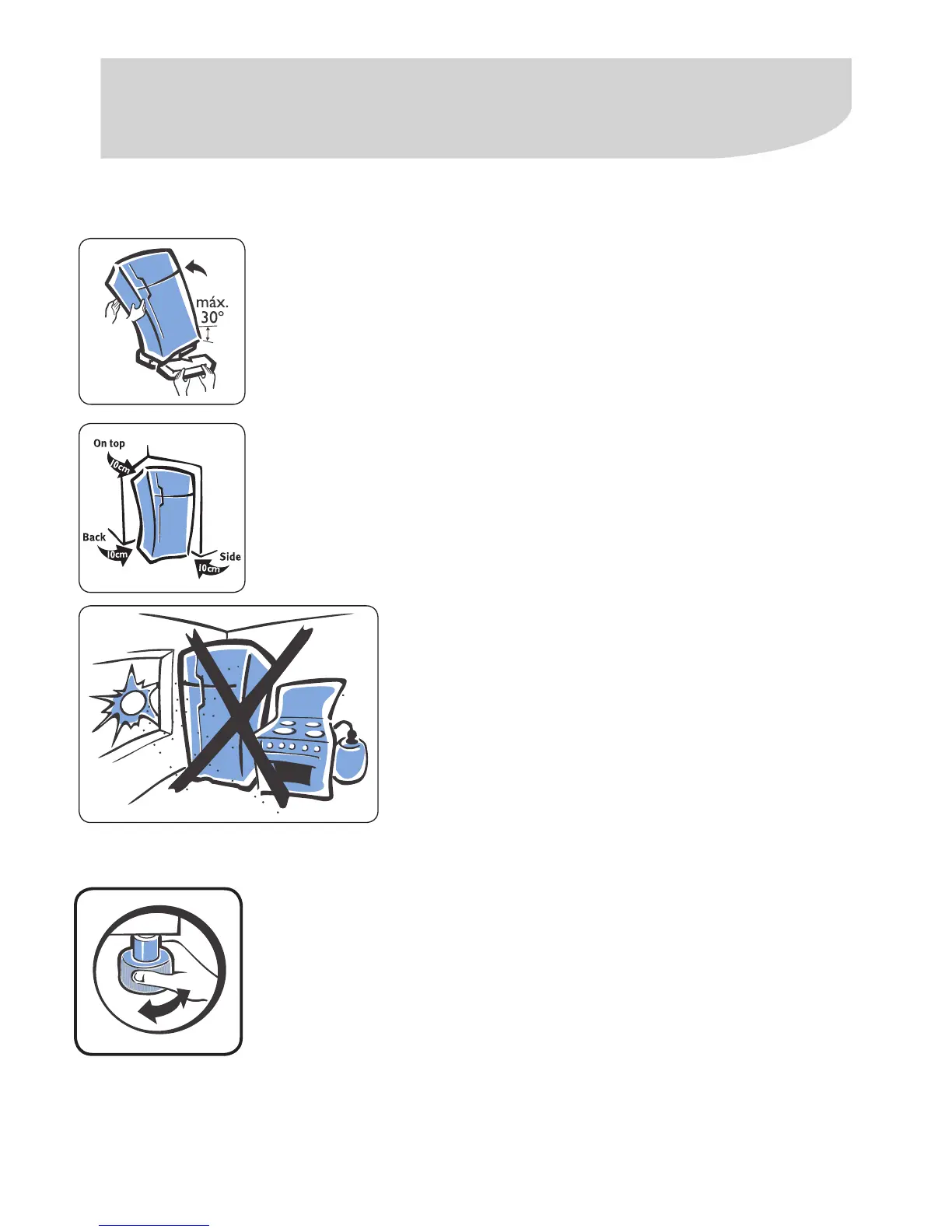 Avoid placing the refrigerator next to chemicals or heat sources (stoves,
