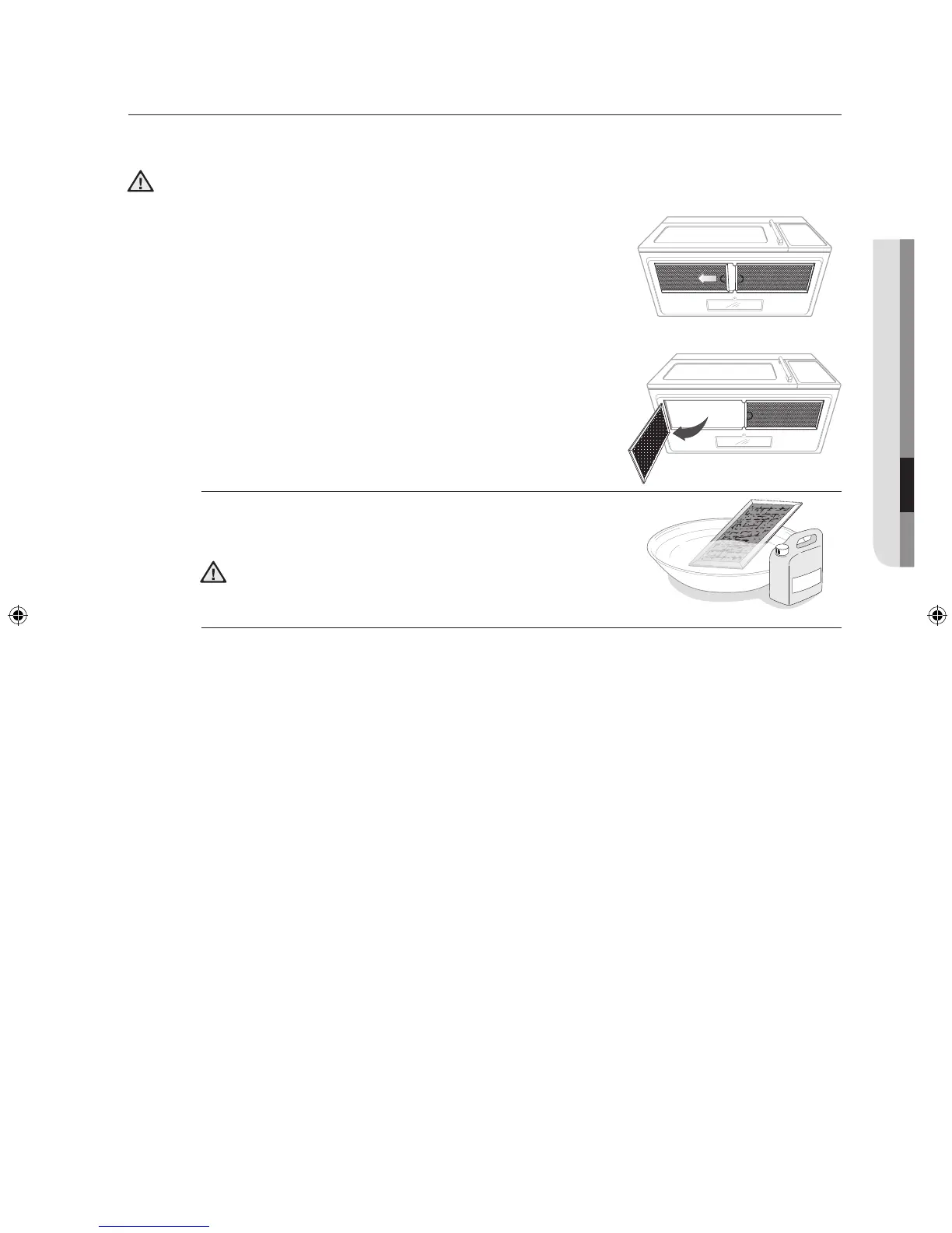 2. Soak the grease filter in hot water and a mild detergent.