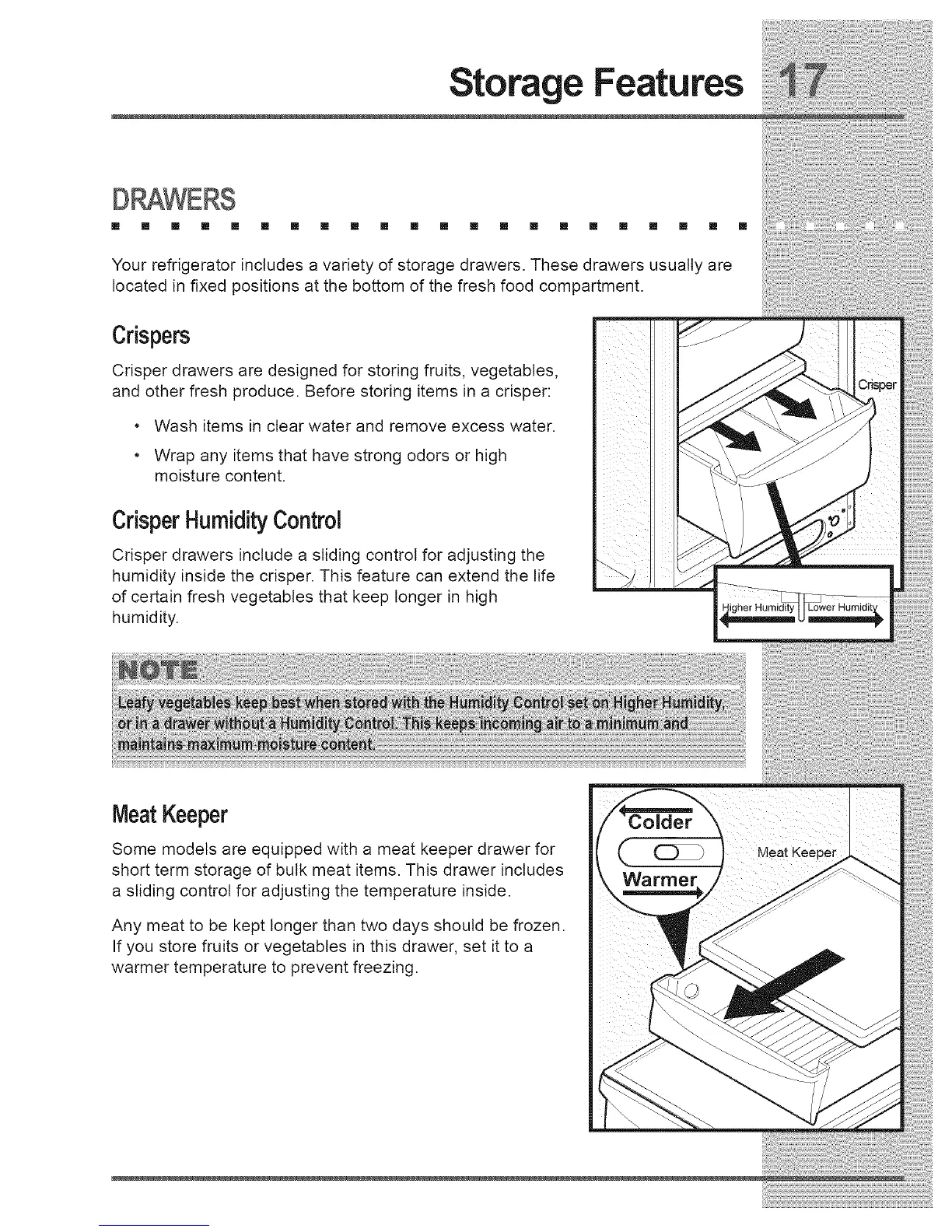 Your refrigerator includes a variety of storage drawers. These drawers usually are