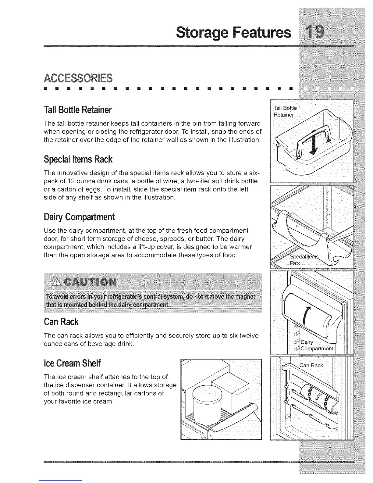 or a carton of eggs. To install, slide the special item rack onto the left