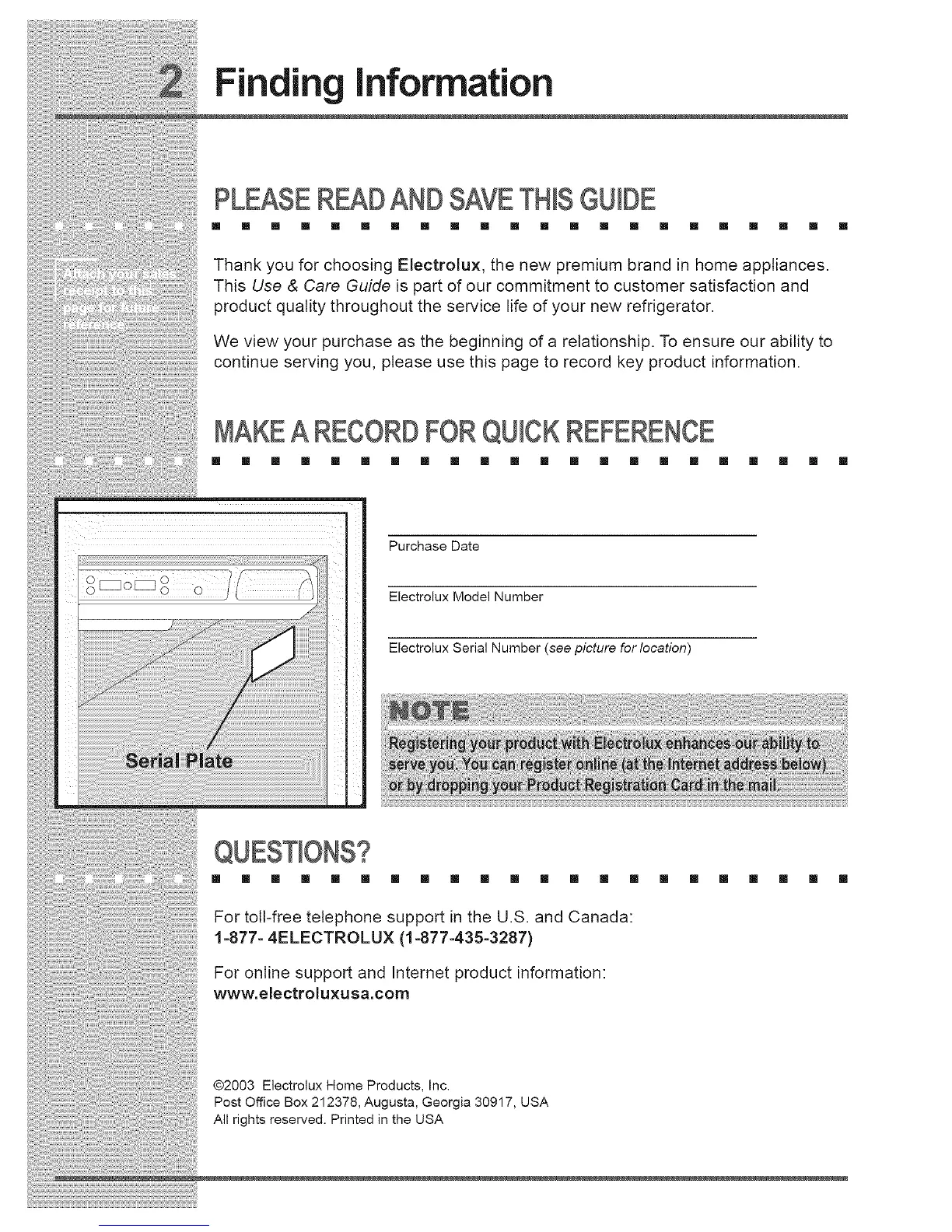 @2003 Electrolux Home Products, Inc.