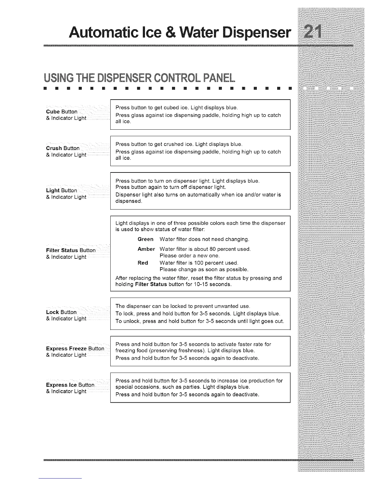 & nd cator L ght dispensed.Dispenserlight also turns on automatically when ice and/or water is