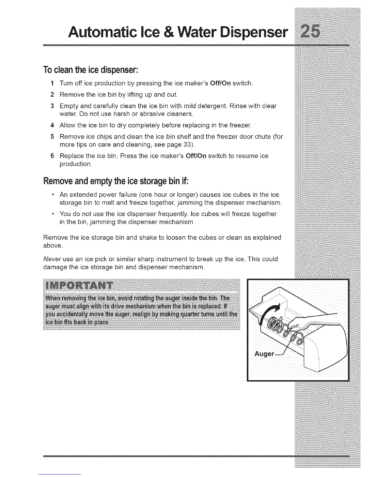 damage the ice storage bin and dispenser mechanism.