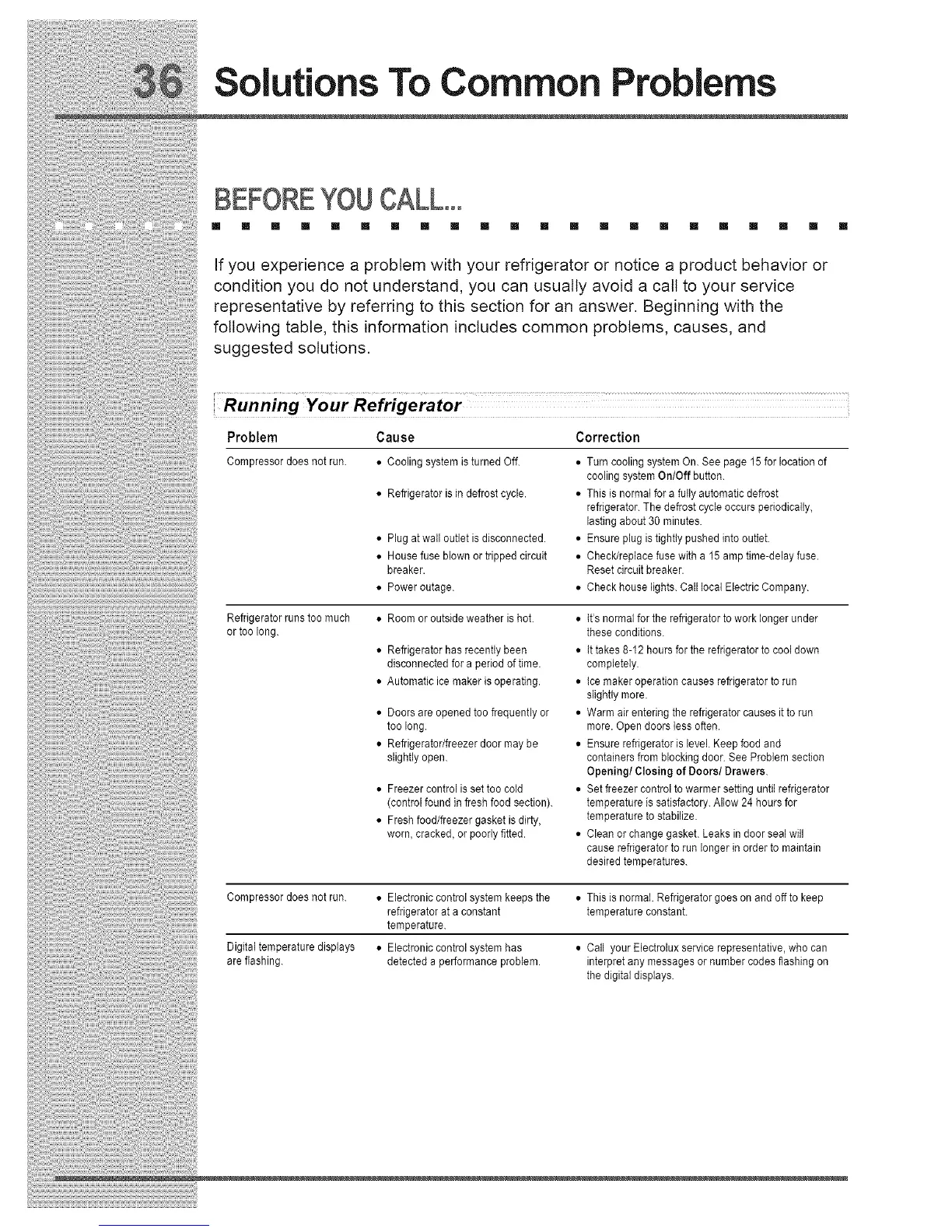 Digital temperature displays • Electronic control system has • Call your Electrolux service representative, who can