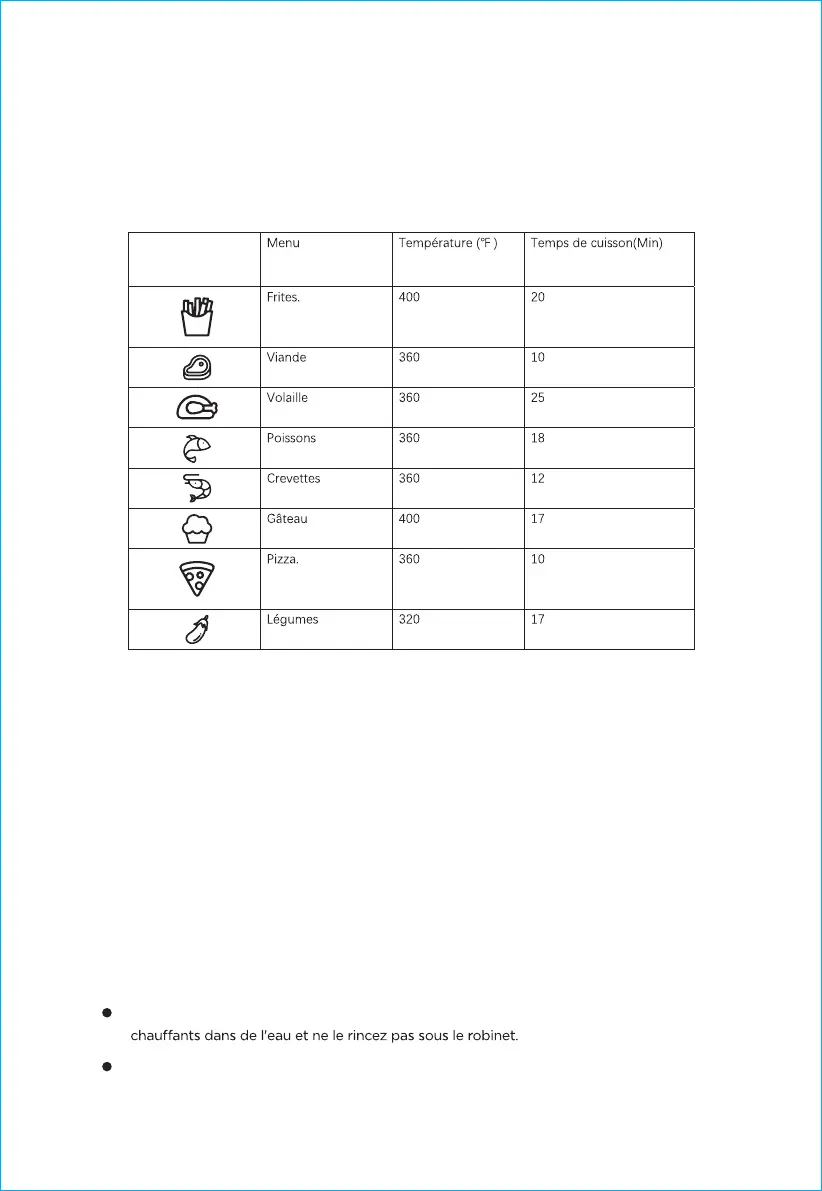 Ne plongez jamais l'appareil contenant des composants électriques et les éléments