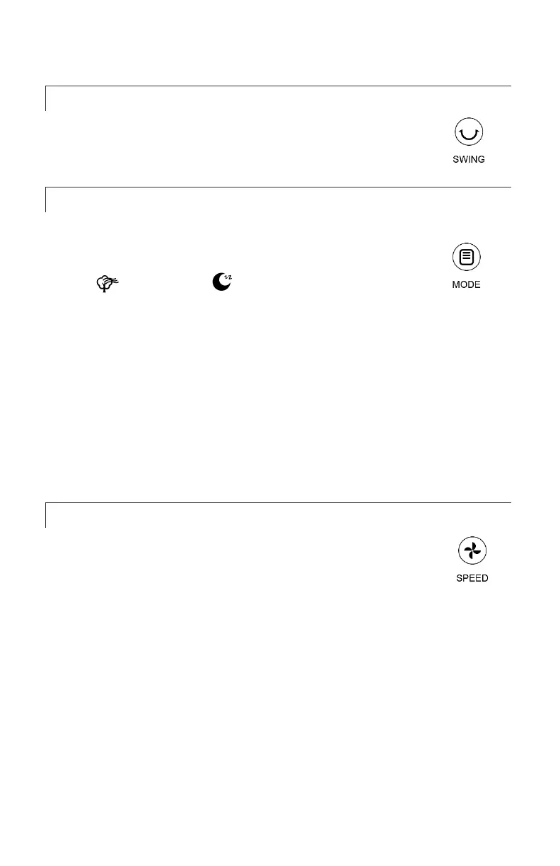 Press the “Swing” button to make the fan oscillate at a range of 50
